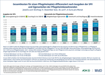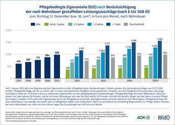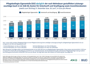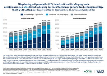 Entwicklung der Eigenanteile in der vollstationären Pflege